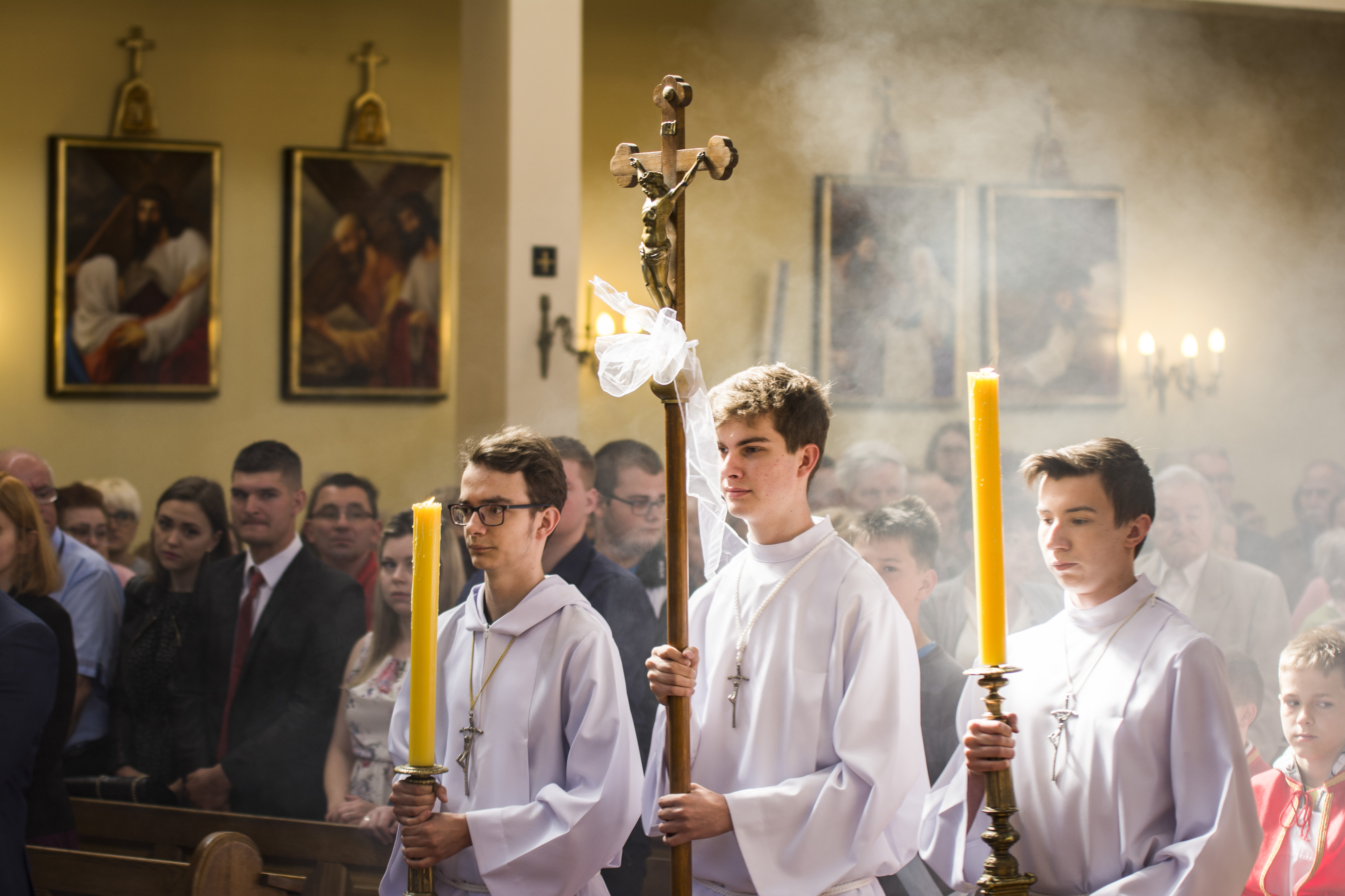 Tymczasem zostawiam Wam kawałek innego rodzaju wykonywanych przeze mnie zleceń – reportaży prymicyjnych. Już kilkukrotnie uczestniczyłam jako fotograf w tego rodzaju uroczystościach…i jestem ciągle wzruszona intymnością. Poślubienie przez nowych księży samego Boga? Brzmi to może dziwnie, ale patrząc na każdego kapłana, który pierwszy raz celebruje Mszę Świętą, czuję się jak gdybym uczestniczyła w swego rodzaju ślubie. Uroczystość jest poruszająca. Skupienie na Liturgii, czytania i śpiewy, specjalne błogosławieństwo – to wszystko składa się na bardzo piękną Tajemnicę wiary. Misterium – tak bym to ujęła. Czy Bóg patrząc na kapłana i wiernych, którzy z wielkim namaszczeniem biorą udział Ofierze, mógłby odrzucić swoje Dzieci? 🙂