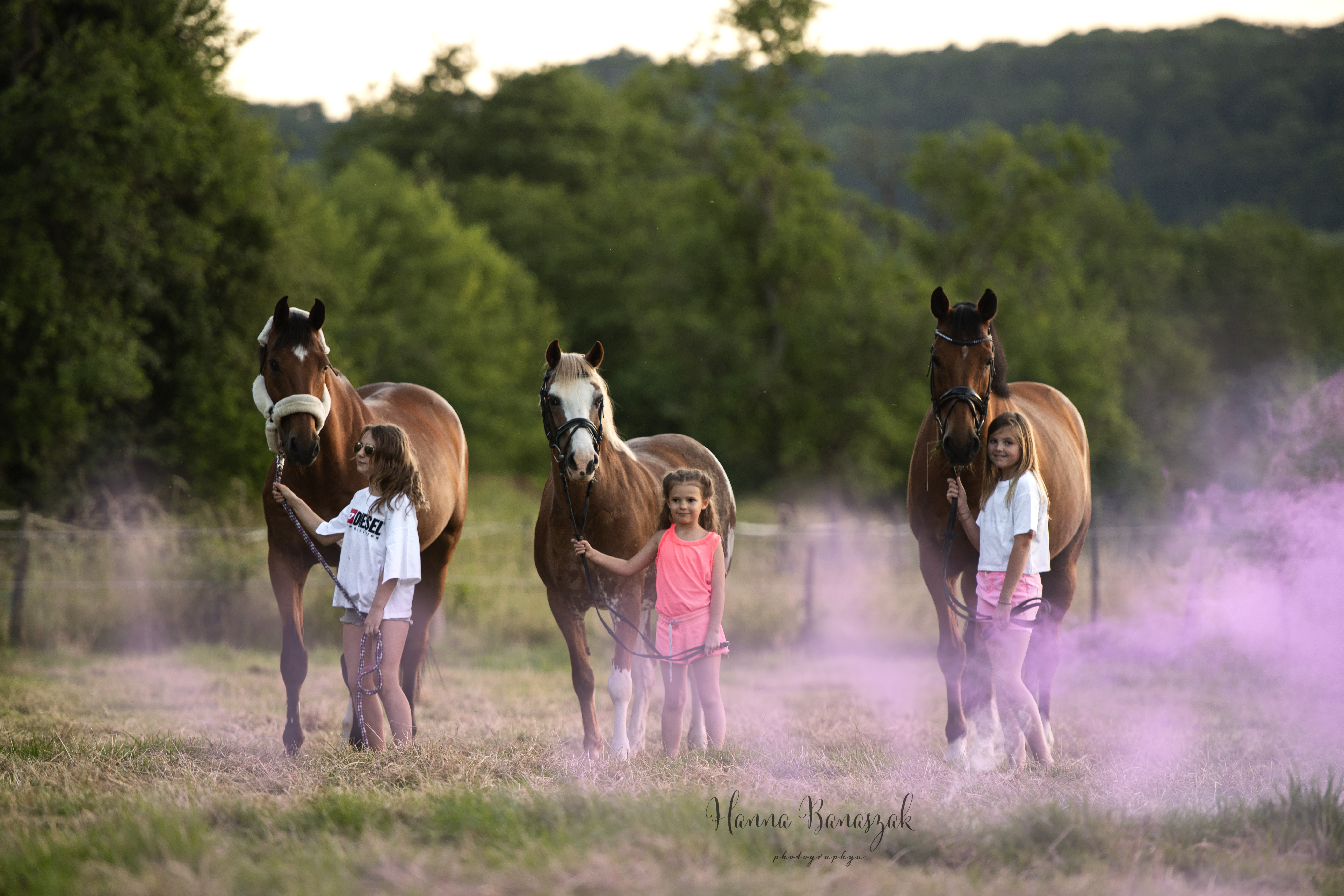 When Kim told me about her idea for the few hours photoshoot with her daughters and friends, I was sooo excited… I love to capture different positions of sun, there is always amazing light, especially during the summer – I really like to observe how the sunlight varries depending on the hour… Do you prefer sunrise or sunset? For me both are such stunning, that I can not decide which one I prefer 😉 But, coming back to the meeting with girls! They prepared themselves and horses so nicely and they had an idea for the images, what I appreciate a lot – if you have some inspiration which you would like to follow – always say it to the photographer! It will be memory of yours, it has to be gorgeous for YOU! 🙂 Always tell your photographer about expectations, what you do like, which profile you like more, do not be afraid to give an info about your dreamed cadr! If you do not feel comfortable, say it! If you imagine something, say it! If you are scared of your appearance on the photos, do not hesitate to tell your photographer about it! I AM FOR YOU! Thank you girls for this great time together, for the sunset and blue hour with smoke bombs, your patience and following my advices! I am very happy to meet you 🙂