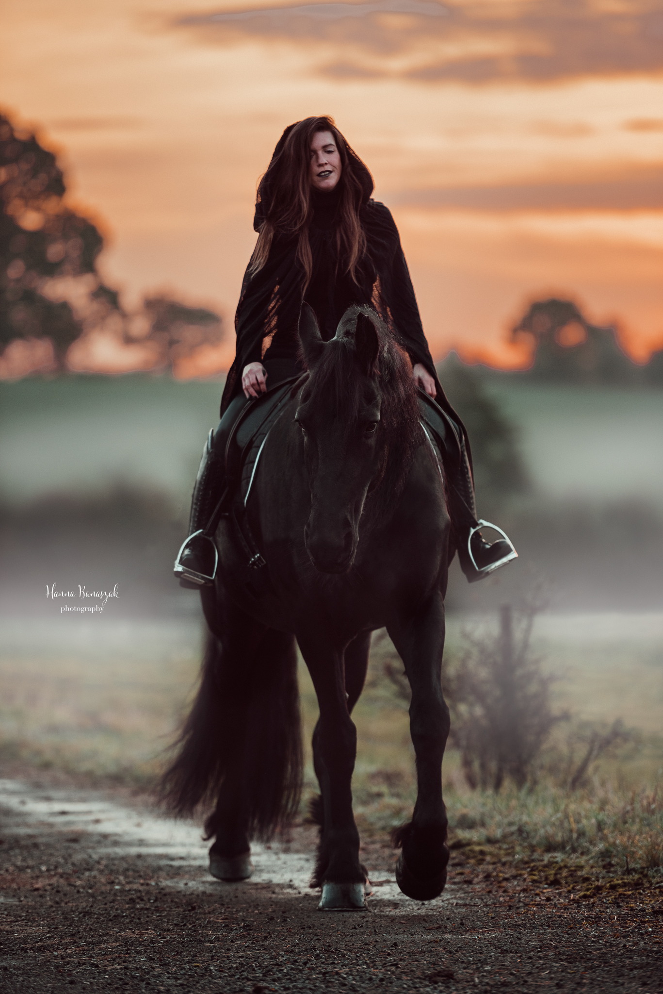 Ta sesja jest na moim dysku już od kilku miesięcy, ale nic straconego, nigdy nie jest za późno, żeby pokazać Wam nastrojową sesję zdjęciową z Kelly i jej pięknym Fryzyjczykiem Fabio ❤️ Spotkałyśmy się pod koniec października, to był cudowny wschód słońca… gdzieś w dolinie widać było mgłę, promienie słońca wpadały do lasu między drzewami… to było wyjątkowe spotkanie. I oni. Te dwie dusze łączy taka więź, taki rodzaj zaufania, jakie chciałabym, aby każdy miał ze swoimi końmi.