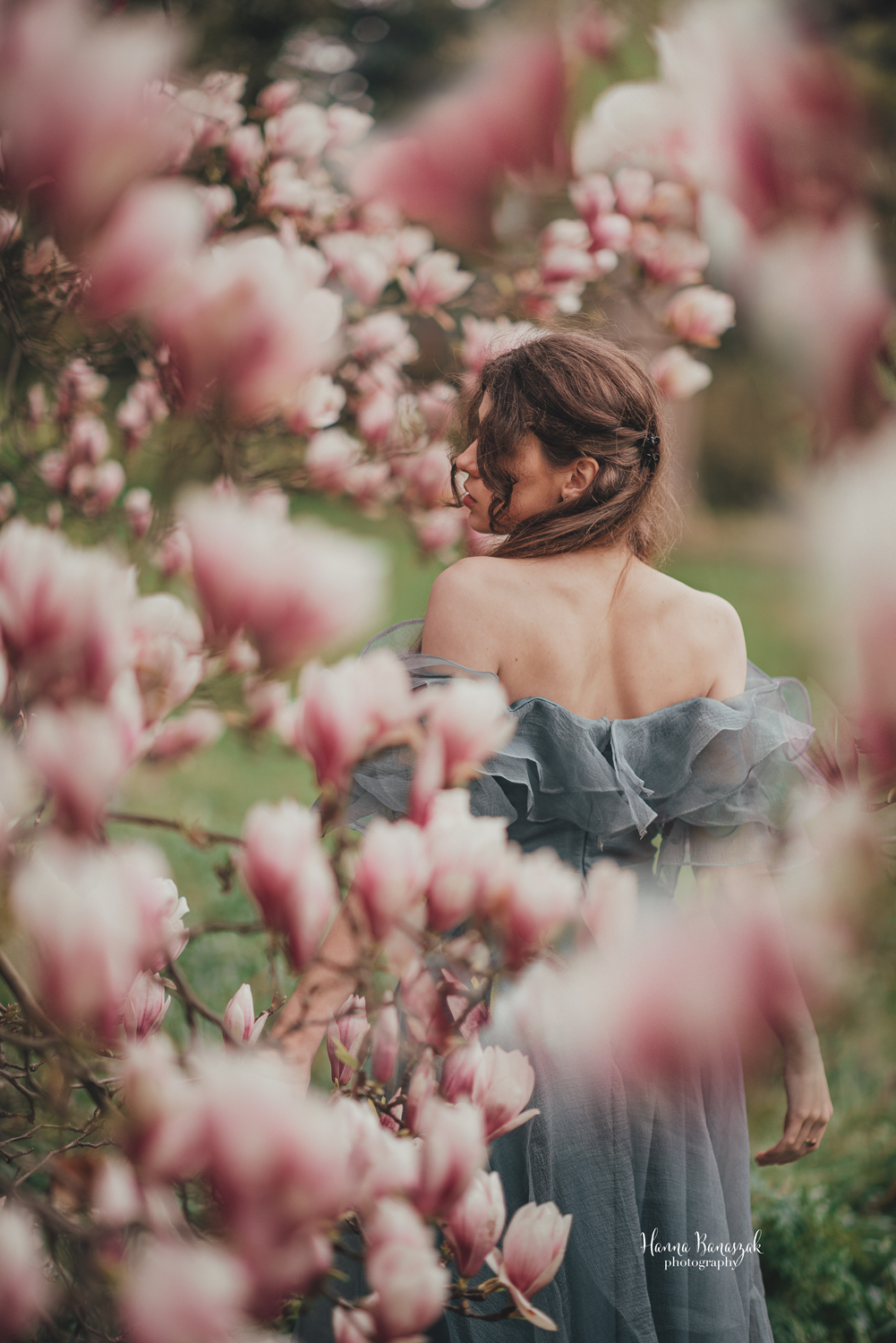 Odkąd zaczęłam fotografować, zawsze chciałam zrobić wymarzoną sesję zdjęciową z tą oszałamiającą rośliną, ale do tej wiosny zawsze byłam za późno/ nadchodziła burza i wszystko niszczyła/ przyszedł covid/ itd.. Wyobraźcie sobie, jak bardzo byłam sfrustrowana, przez lata! Wreszcie dostałam szansę. To była szansa na 1/1000, że znalazłam Magnolię, pogoda dopisała, dostałam pozwolenie na wejście do ogrodu ORAZ! Moja siostra zgodziła się mi zapozować. To był dla mnie dosłownie cud. I wiecie co? Teraz jestem jeszcze bardziej sfrustrowana, w przyszłym roku znów będę polować 😂🙈🤩