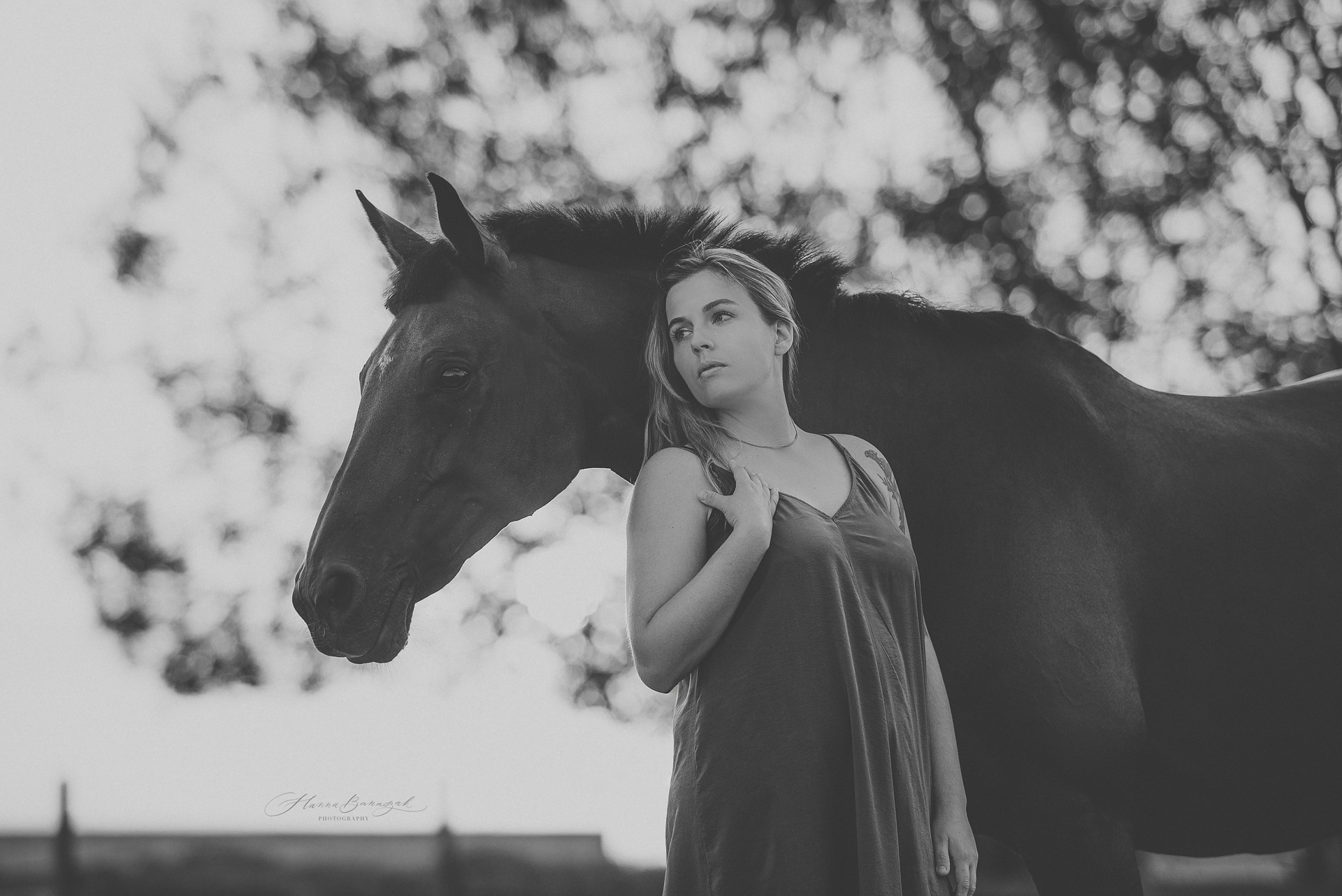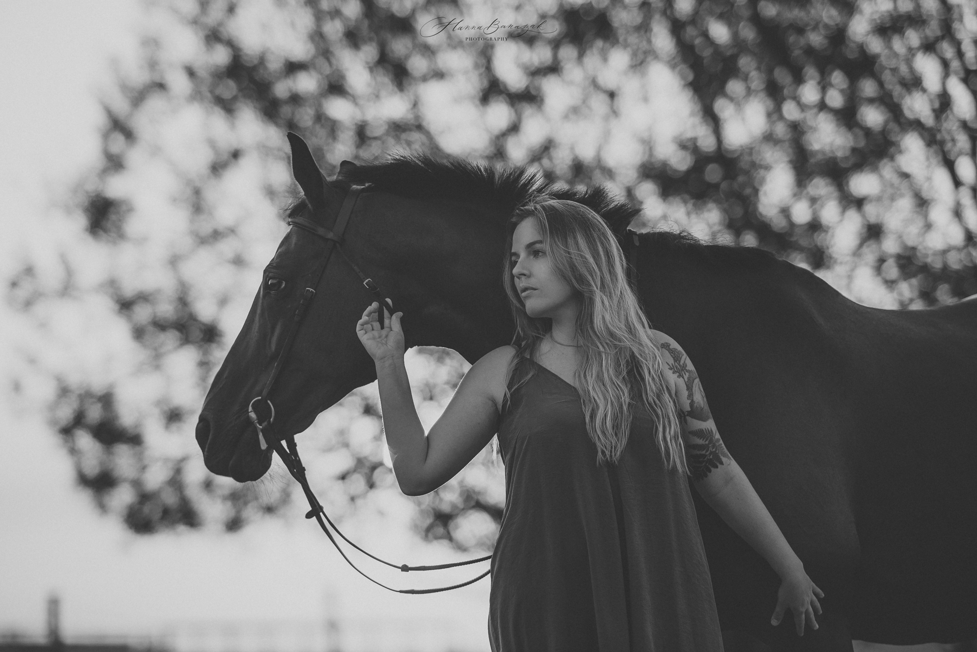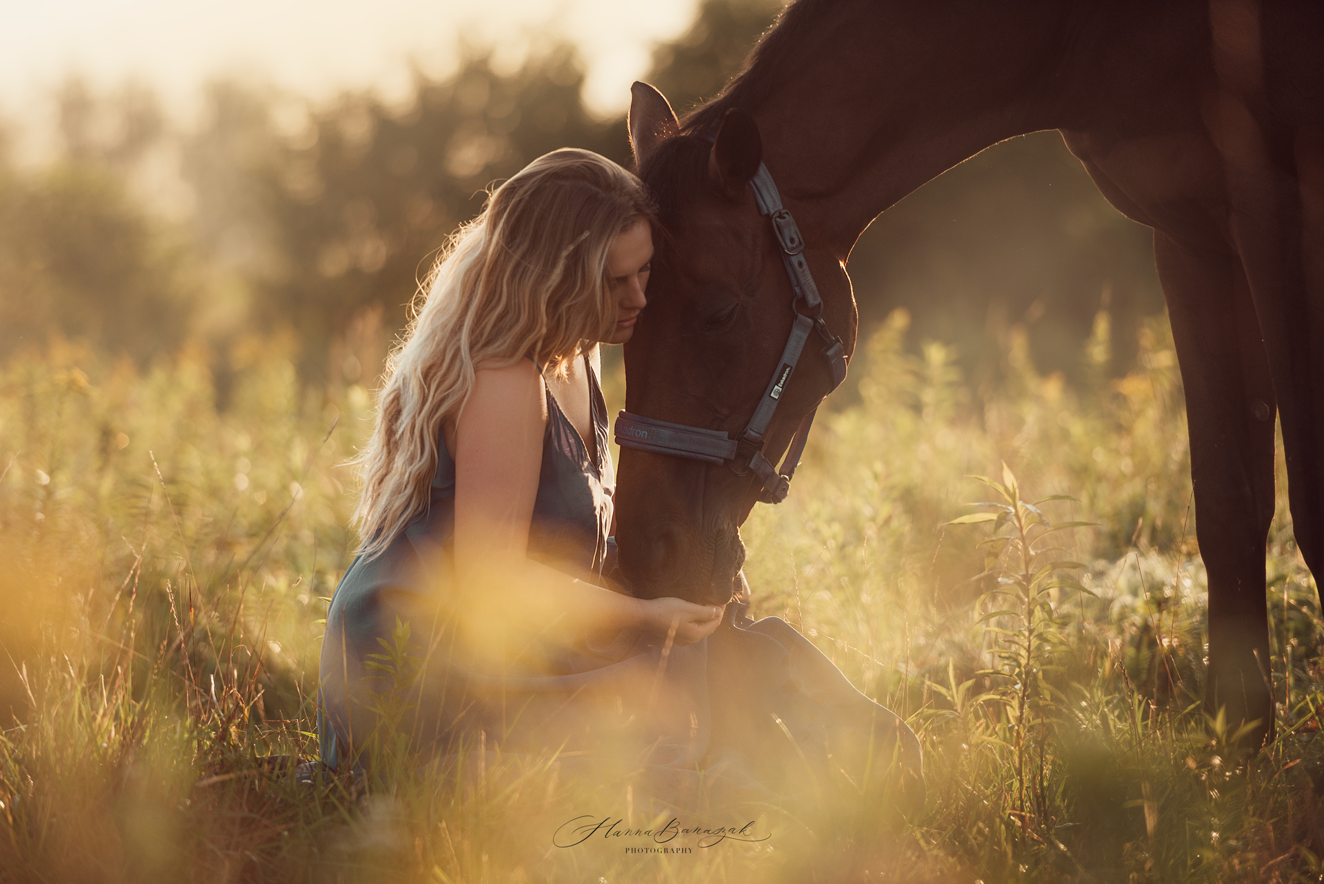 Fotografuję Ninę i Sansierrę od ponad dekady i to dla mnie niezwykłe wyróżnienie być świadkiem rozwoju relacji tych dwóch pięknych Duszyczek ❤ Zawsze czuję się bardzo wzruszona, gdy wracam do nich za każdym razem. Przeważnie robiłyśmy zdjęcia w najróżniejszych stylizacjach, od meloników, po księżniczkowe wielkie suknie balowe, z wiankami lub bez 😀 było już tyle konfiguracji! Ale ten raz…był inny. Rozmawiałyśmy przed sesją o wielu aspektach w relacji dziewczyn i stanęło na wyborze casualowej luźnej sukienki, kwiatkach i wschodzie słońca. To było dla mnie wyjątkowe spotkanie, z wieloma spokojnymi momentami, eterycznymi kadrami, emocjonalnym podejściem, obserwowaniem troski i uwagi Niny w stosunku do Sansierry. Nina ma wielkie, wdzięczne serce do koni i to właśnie serce przekazuje swoim adeptom, których prowadzi. Tak mnie to cieszy! Potrzebujemy więcej instruktorów, jeźdźców, którzy pokazują młodszym drogę do zrozumienia natury koni. Tak się cieszę Nina, że mogę być jakąś częścią w Waszej historii ❤ Dziękuję ❤